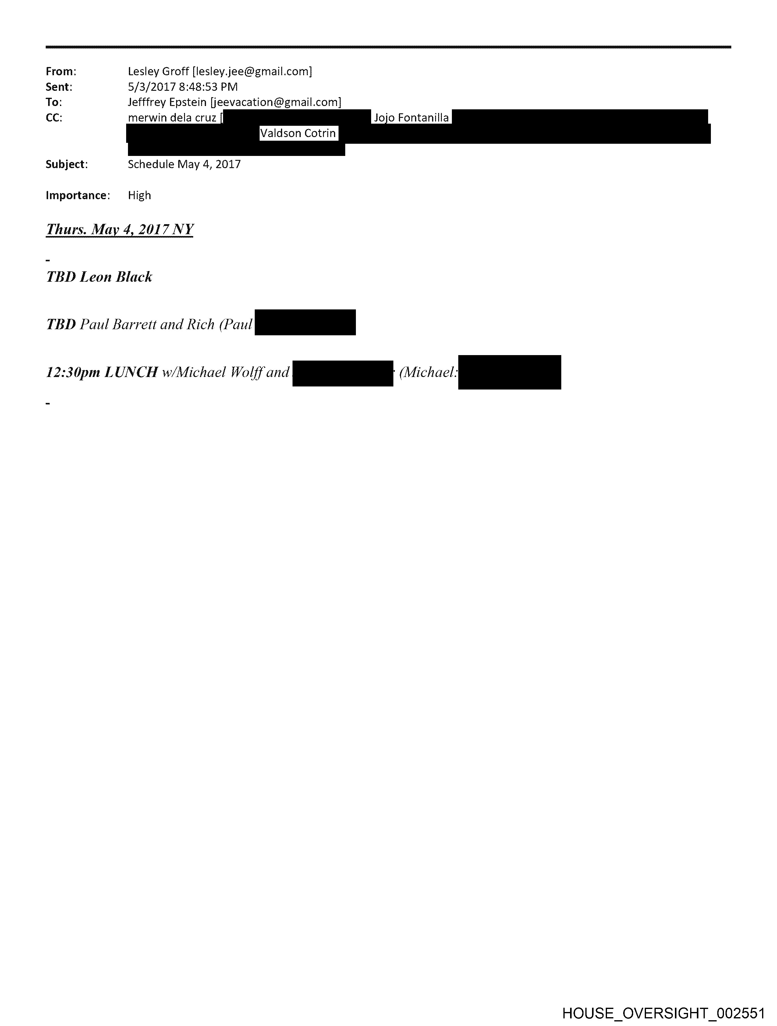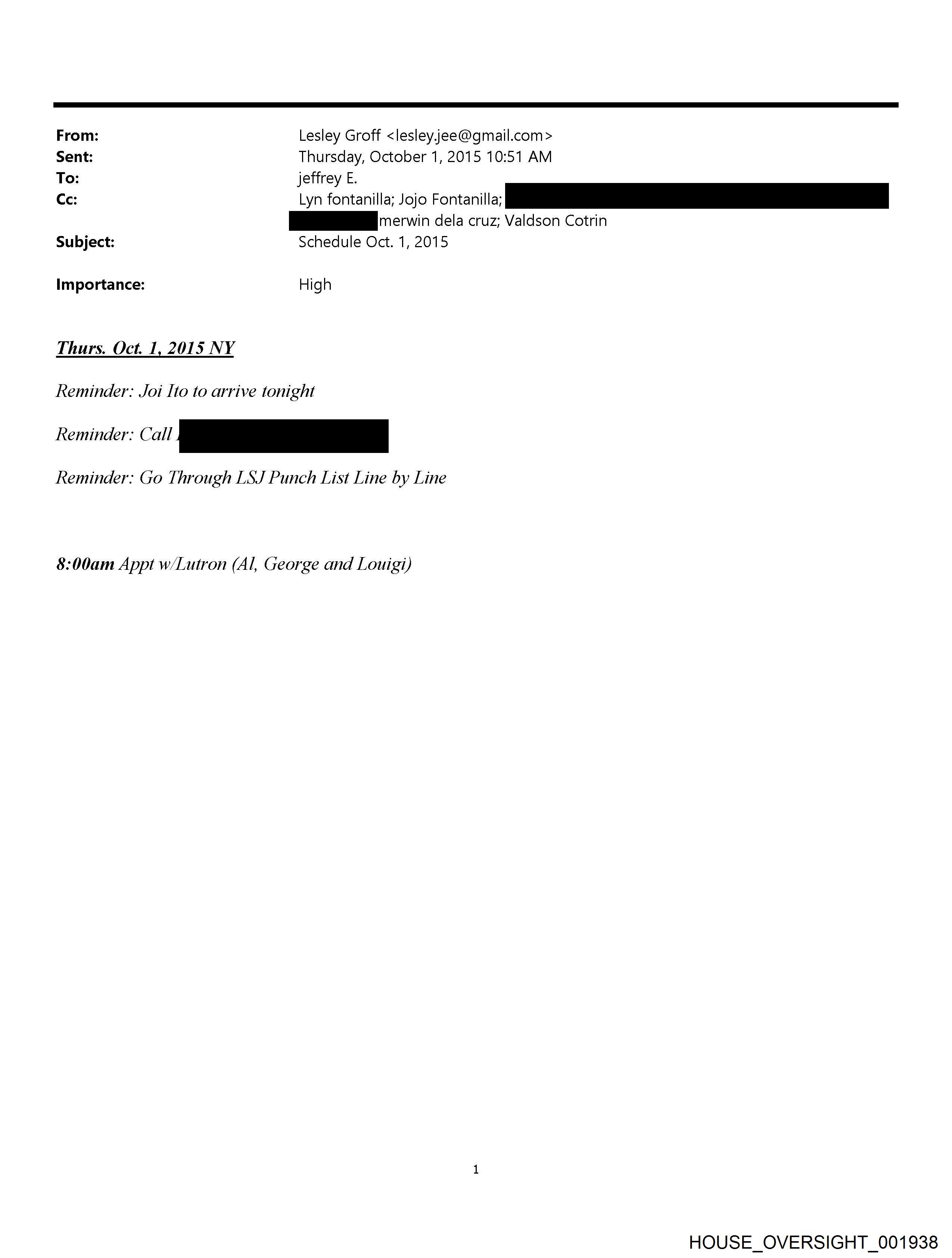 To: Jeffrey Epstein <jeevacation@gmail.com >;