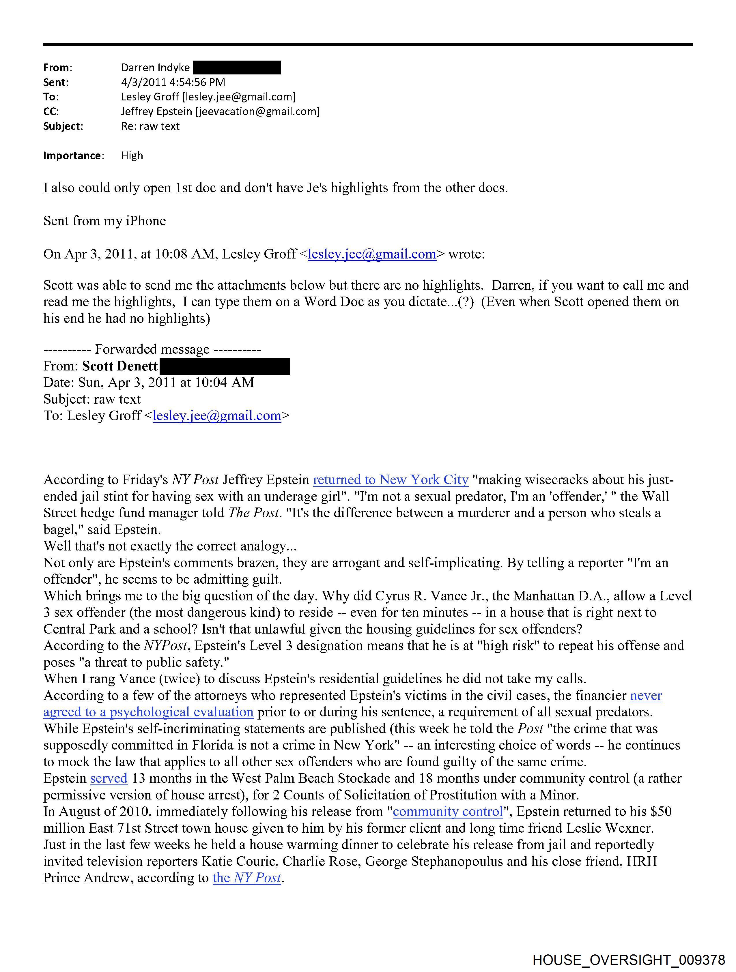 To: Jeffrey Epstein <jeevacation@gmail.com>; Darren Indyke a.