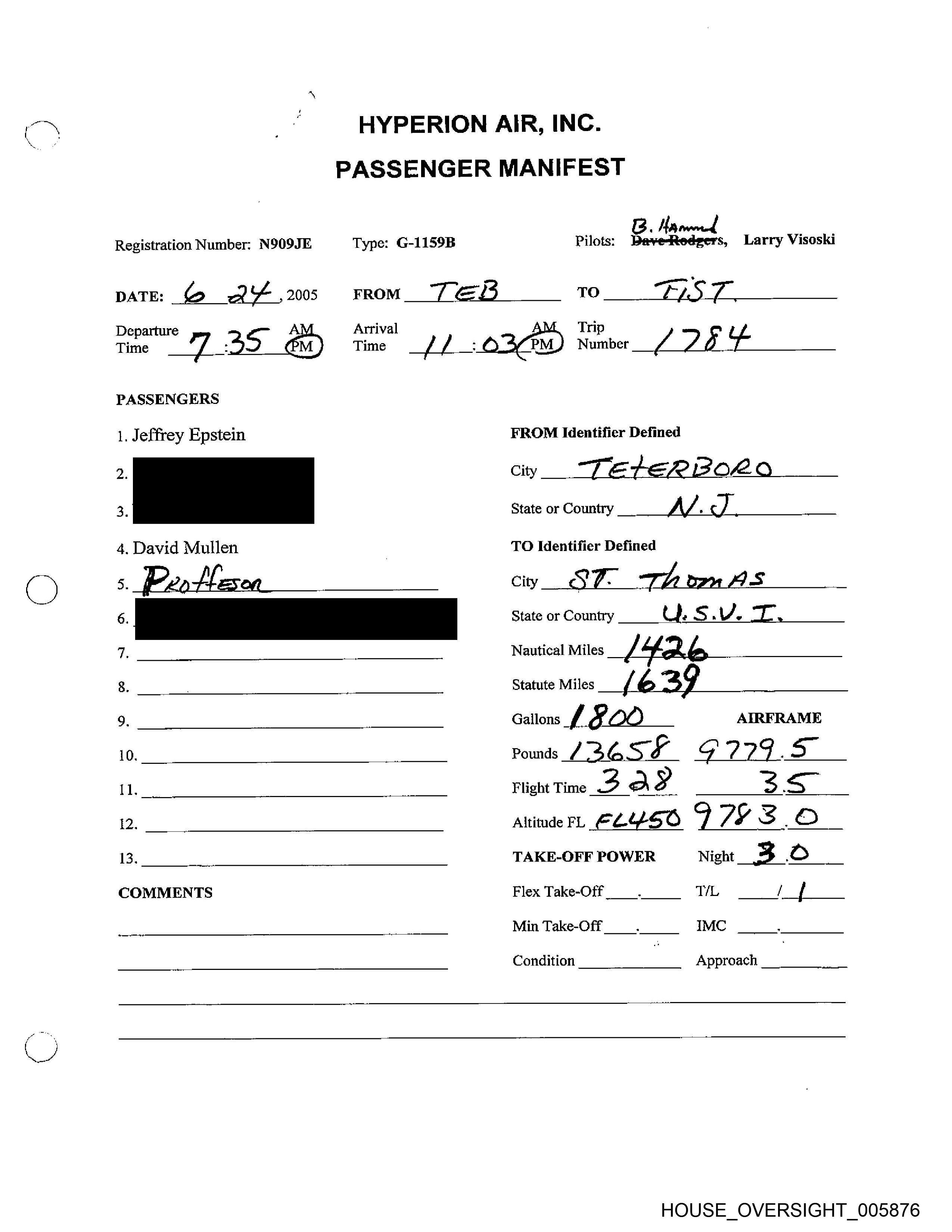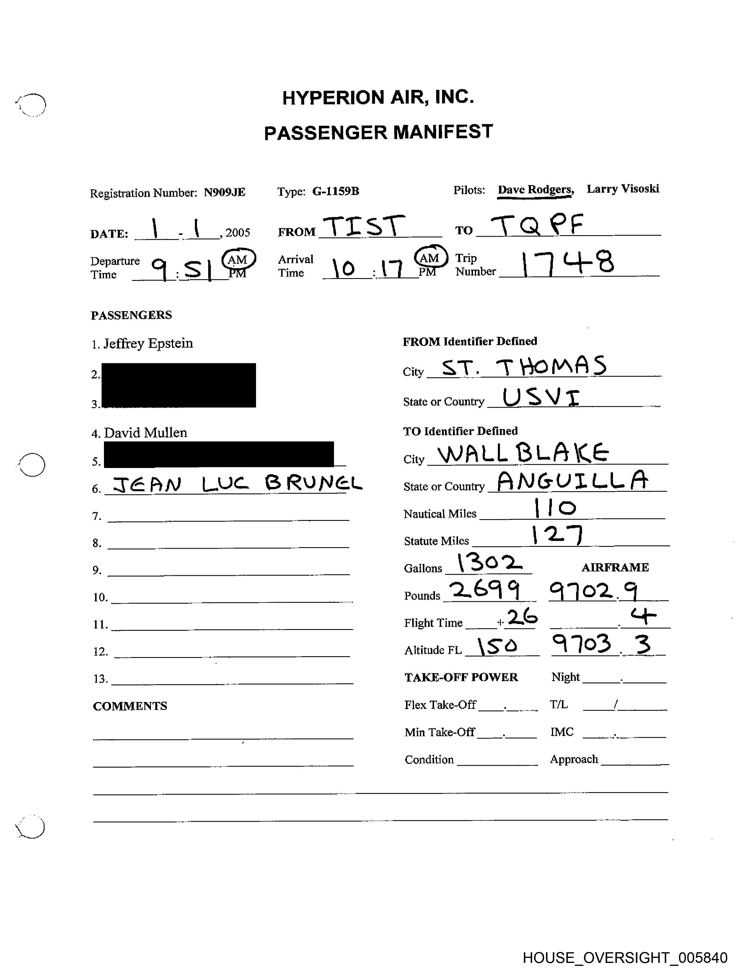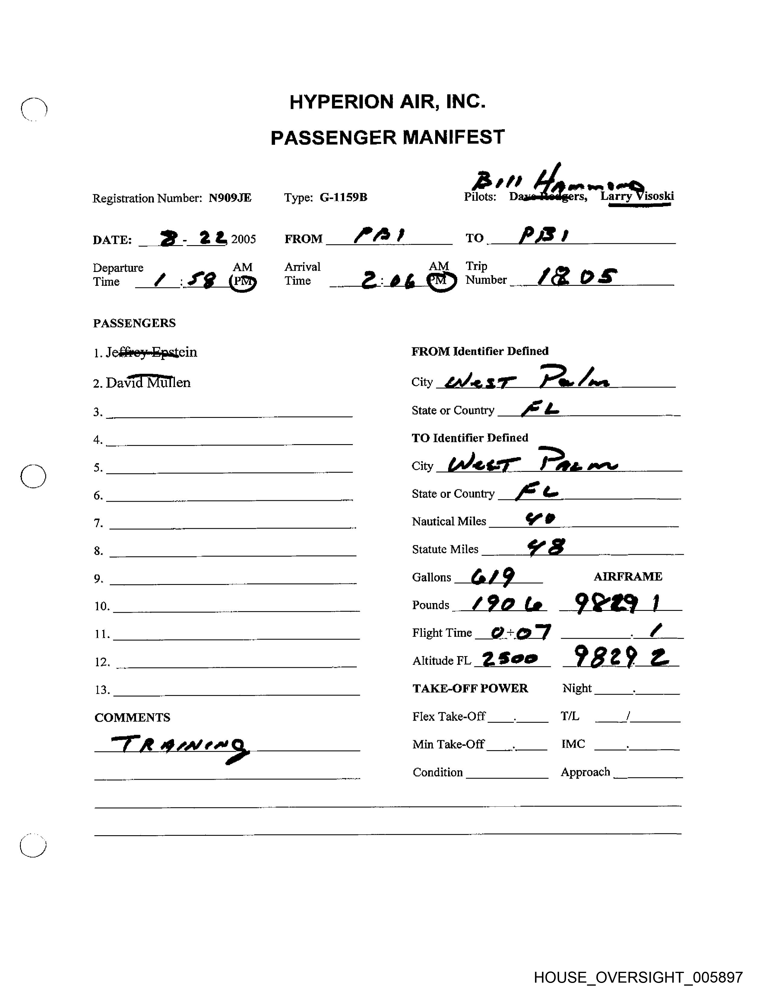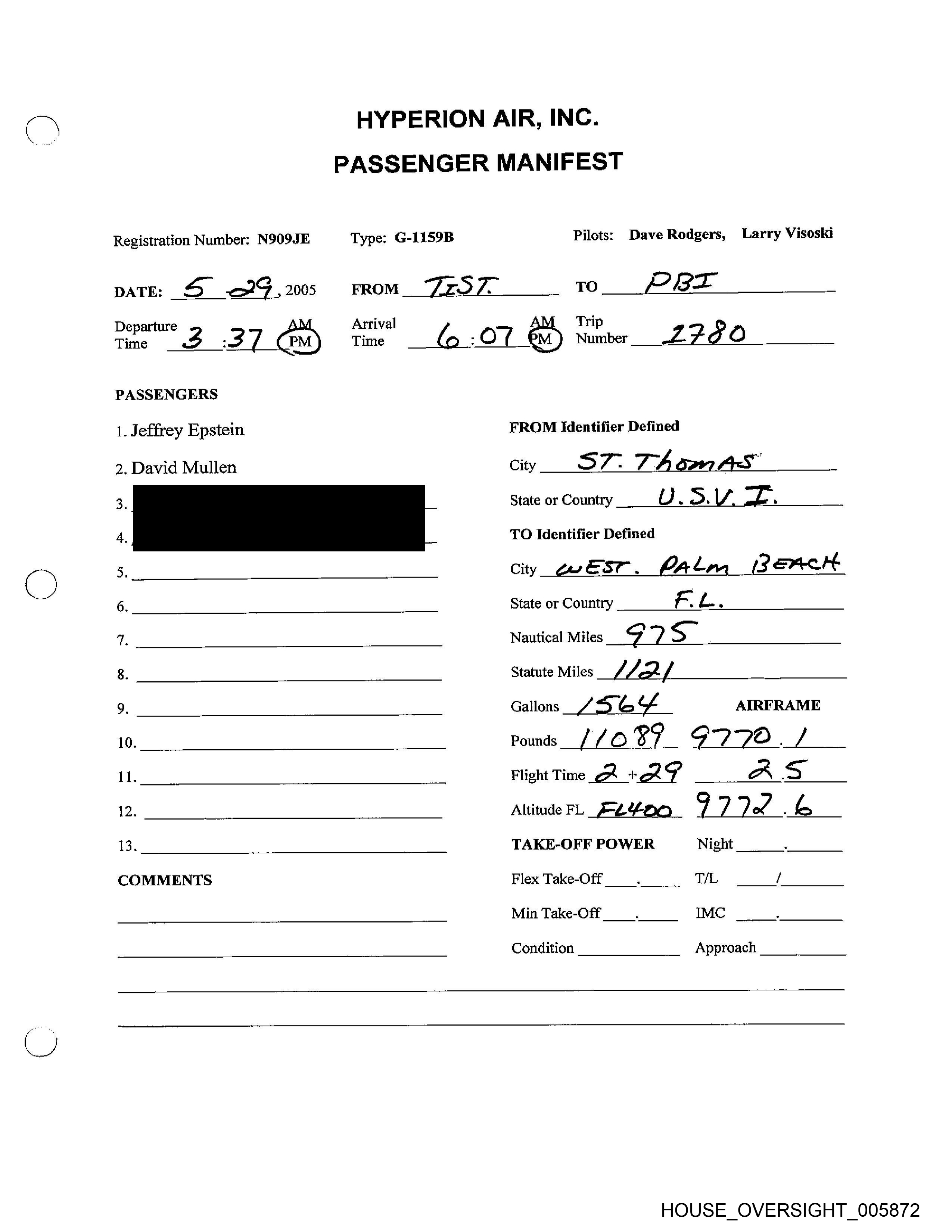 Registration Number: N909JE Type: G-LIS9B Pilots: Dave Rodgers, Larry Visoski