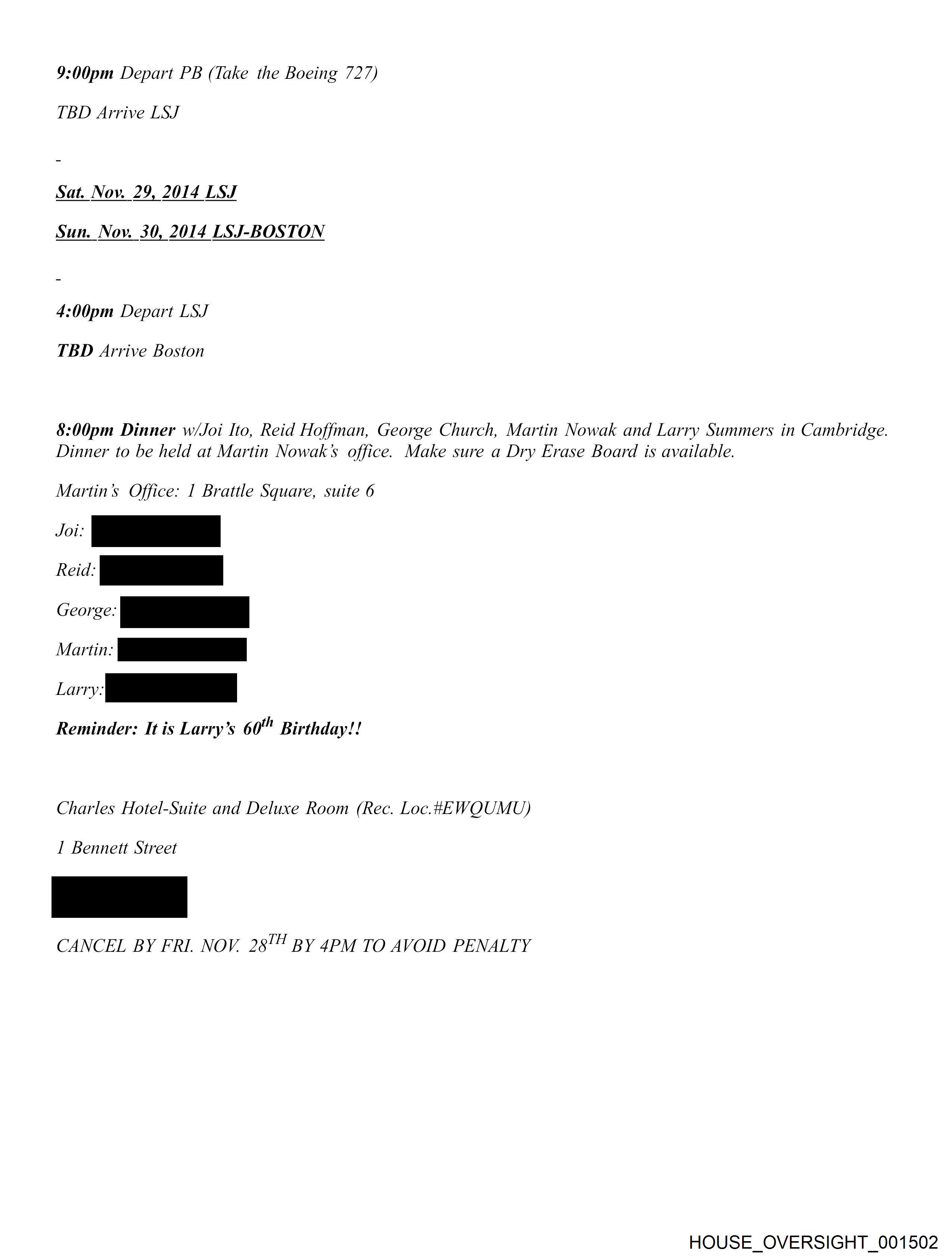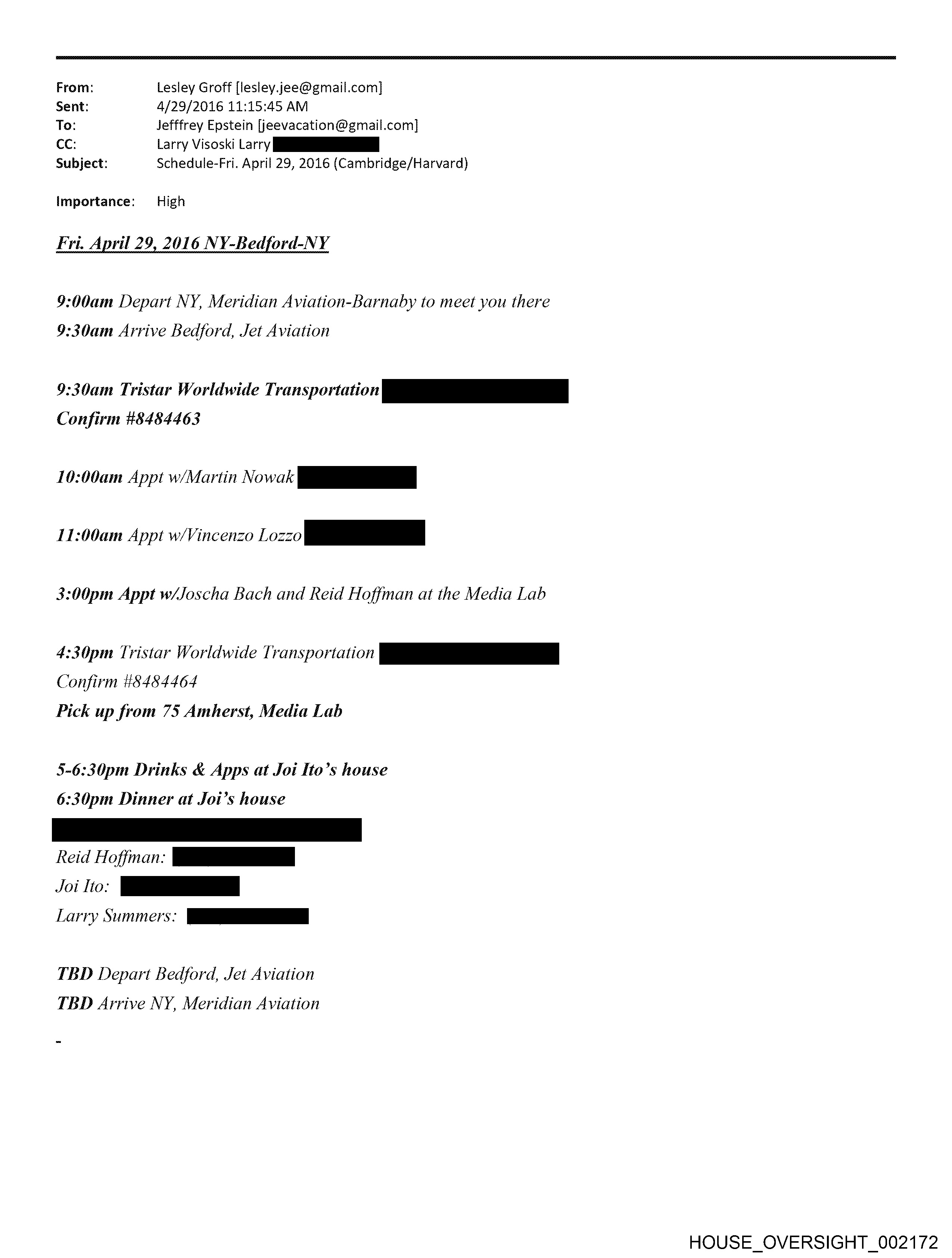 Subject: Schedule-Fri. April 29, 2016 (Cambridge/Harvard)